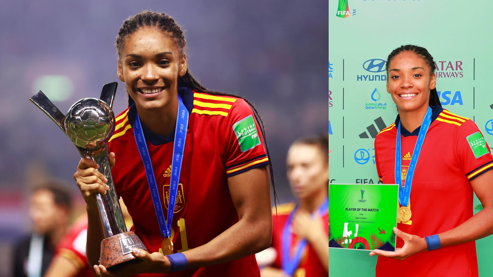 Salma Paralluelo nació en Zaragoza en 2003 y es una de las futbolistas más prometedoras del fútbol femenino mundial. Juega como delantera en el FC Barcelona y forma parte de la selección española, con la que ha logrado hitos históricos.